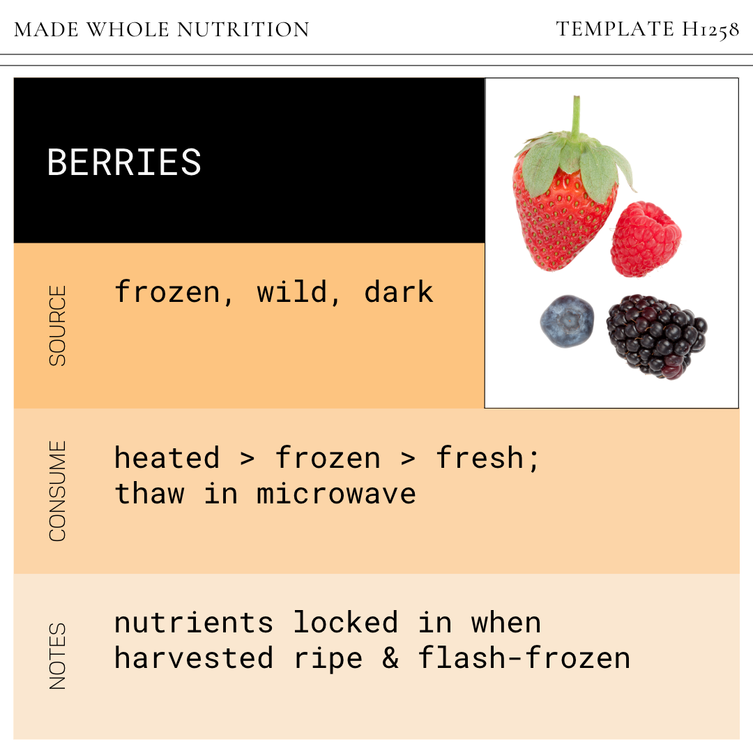 notes: nutrients locked in when harvested ripe & flash-frozen