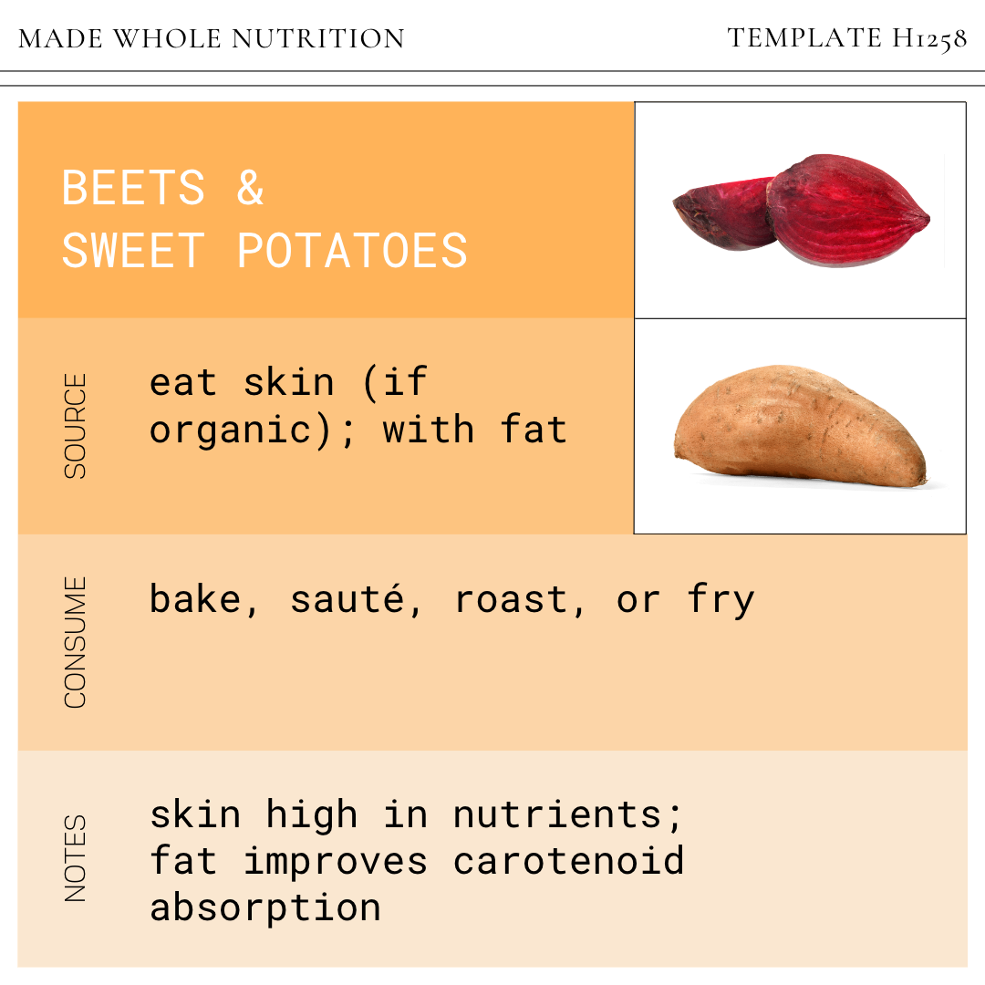 notes: fat improves carotenoid absorption; roasting whole retains nutrients