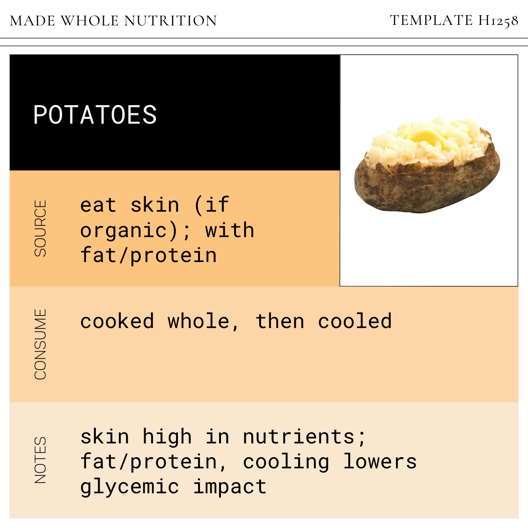 notes: skin high in nutrients; fat/protein, cooling lowers glycemic impact