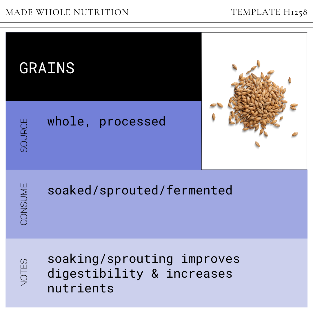 notes: soaking/sprouting improves digestibility & increases nutrients